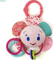 Пластмасове кільце брязкальця дозволяє легко і швидко прикріпити її до дуг розвиваючого килимка або до дуги, встановленої на ліжечку маляти, на автокрісло або прогулянкову коляску. Дитина розглядає яскраве яблуко, що висить над ним, чіпає його, і отримує перше уявлення про колір, форму, матеріал. Ніжки веселого яблука гримлять, на кожній по два колечка, різні на дотик. У стопах яблука - два дзеркальця. Долоньки зроблені у вигляді прорезивателей для зубів з м'якого безпечного пластику, а ручки розтягуються, якщо їх потягнути.