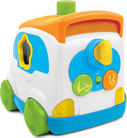 Игрушка отлично подойдет для детей полтора двух лет, так как они начинают фантазировать и творить посредством ролевой игры. Легко представить себя водителем или пассажиром и потренировать воображение. Во время игры с автобусом ребенок может выучить английский алфавит, некоторые слова и цифры до 10, также развиваются слуховые навыки, двигательные способности, мышцы рук, зрительно-моторная координация. Музыкальный автобус сделан качественно, из безопасного и крепкого пластика. Он сертифицирован по европейскому EN71 и американскому ASTM стандартам детских игрушек.
