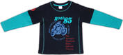 Модель представлена в сером, синем и коричневом цвете. Полочка декорирована двухцветным принтом-шелкографией «Sport», что несомненно понравится маленькому моднику. Обработка горловины эластичным воротником с декором с открытым краем. По линии горловины эластичная вставка, как на классических свитшотах.