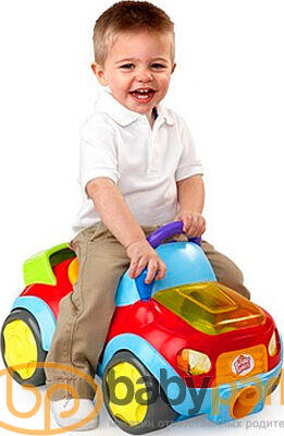 Развивающая игрушка детская каталка cтреляющая мячиками Kids II. Машина подарит малышу множество счастливых минут. Мальчишки и девчонки с удовольствием покатаются на красочном мячикомете. Киньте мячик в отверствие на руле и вы услышите веселые звуки, а мячик попадет под прозрачный капот. Потяните за ручку переключения передач и мячики начнут выпрыгивать из под капота через отверствие в переднем бампере. Нажмите на кнопки на передней панели и вы услышите забавные звуки автомобильного гудка и заводящегося двигателя. Для детей от 6 месяцев