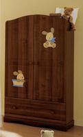 Два отделения, с тремя большими полочками и планкой для вешалок, широкий выдвижной ящик, который плавно ходит на металлических направляющих. В таком шкафу легко разместится весь детский гардероб и игрушки. Нужно отметить, что шкаф изготовлен из материалов, которые не создают вредных испарений, и безопасны для использования в детской.