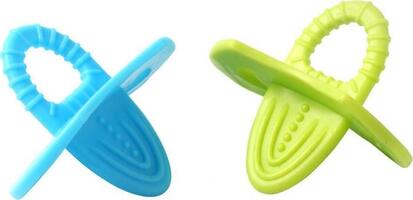Можливість охолодження в холодильнику. Спеціальна конструкція дає можливість легкого нанесення гелю, що зменшує біль ясен. Еластичний матеріал з хвилястою структурою ідеально масажує ясна дитини. Легкий, відповідний за розміром маленьким ручкам і ротику дитини.