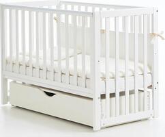 Три рівня установки підматрацника. Дно ліжечка виготовлено з ортопедичних ламелей, які забезпечують достатню вентиляцію матраца і постільної білизни. Рухома бокова стінка з надійним механізмом опускання (може опускатися і зніматися повністю). На італійській системі опускання (полозки "заховані" внизу, чути характерний звук фіксації решітки в верхньому і нижньому положенні при її опусканні / підніманні). Наявність знімних спиць (коли дитина підросте - зможе самостійно виходити і повертатися в ліжечко через місце, де витягуються спиці). Можливість трансформації ліжечка в дитячий диванчик (для цього потрібно зняти бічну рухливу стінку). Захисна накладка-гризун на верхній частині боковин, яка захищає ясна дитини. Всі деталі ліжечка мають безпечні округлі форми і поліровані поверхні. Без системи заколисування, встановлюється на ніжки (систему заколисування - маятник або маятник з ящиком, колеса - можна докупити окремо, маятник і колеса з фіксаторами). Екологічний сертифікат відповідності зі стандартом ISO 14024: 2002. Сертифіковані фарби і лаки на водній основі, з додаванням іонів срібла.
