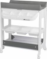 Рекомендовано дітям від народження та до 1 року. Поверхня для сповивання оснащена м'яким та знімним анатомічним вкладишем для дітей від народження. Бічні борти забезпечують максимальну безпеку. Столик має практичний органайзер для аксесуарів. Великий контейнер для зберігання рушників, підгузків, тримач для губки та лійки для миття голови. Ергономічну ванну можна використовувати окремо. Міцна пластикова ванна має злив для води через спеціальну трубку. Висота регулюється у трьох положеннях та адаптується під зростання батьків для максимального комфорту під час сповивання чи купання. Швидко та компактно складається для зберігання.